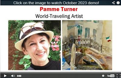 An avid world traveler, Pamme invites us to share her love of art and travel in her blog, travelingartist.blog and pammeturner.com; embark on a delightful journey with an outstanding artist and teacher! Enjoy the work painted during these travels!